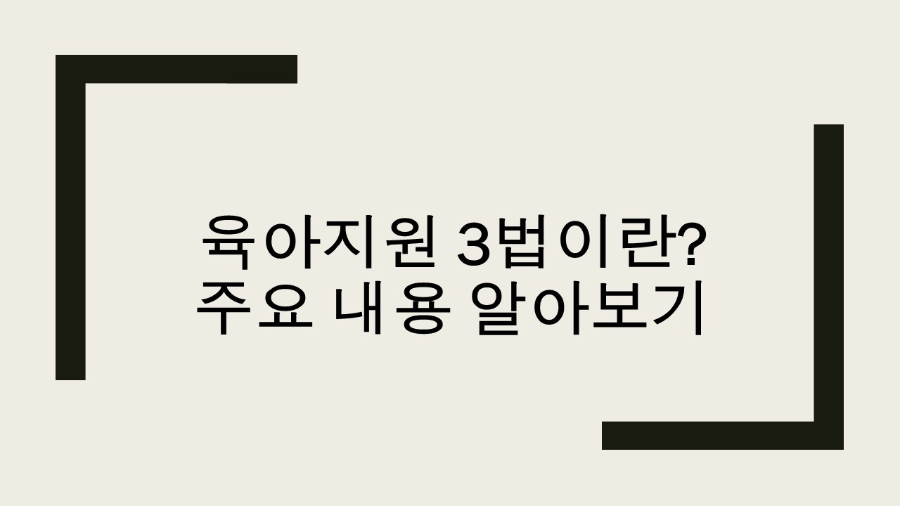 육아지원 3법은 대한민국 정부가 부모들의 양육 부담을 덜고, 아이들이 건강하게 성장할 수 있도록 지원하기 위해 마련한 주요 법안들을 의미합니다.