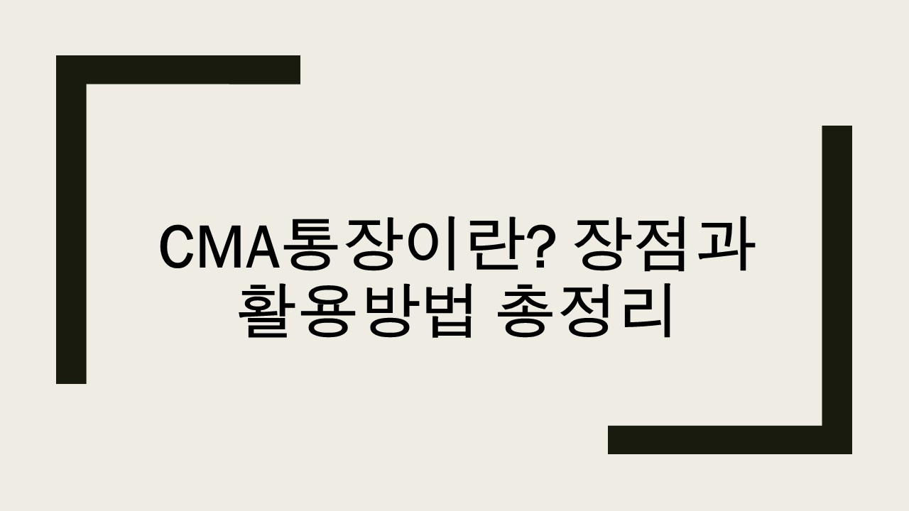 CMA 통장은 높은 금리와 자유로운 입출금이 가능한 실용적인 금융 상품입니다.